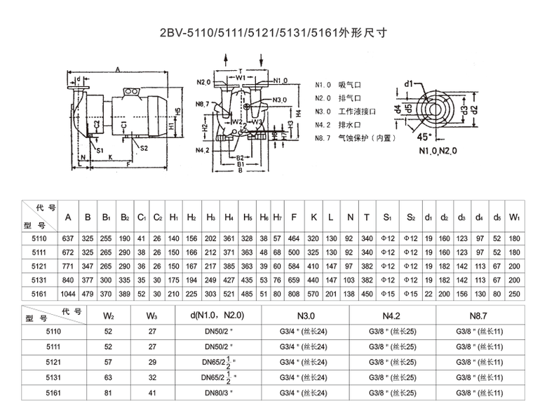 2BVA5131水環真空泵適用于抽除氣體和水蒸氣吸氣壓力可以達到33mbar絕壓(97%真空度)。當水環真空泵在吸氣壓力接近極限真空(工作液和蒸汽壓),下長期工作時應聯接汽蝕保護管,以對泵進行保護。作為壓縮機用時,其壓力最大至0.26Mpo(絕壓)。2BV系列水環真空泵作為新一代節能型產品,其出色的性能及眾多優點將全面取代同性能的SK、2SK系列水環真空泵及W、WY、WL系列往復真空泵。