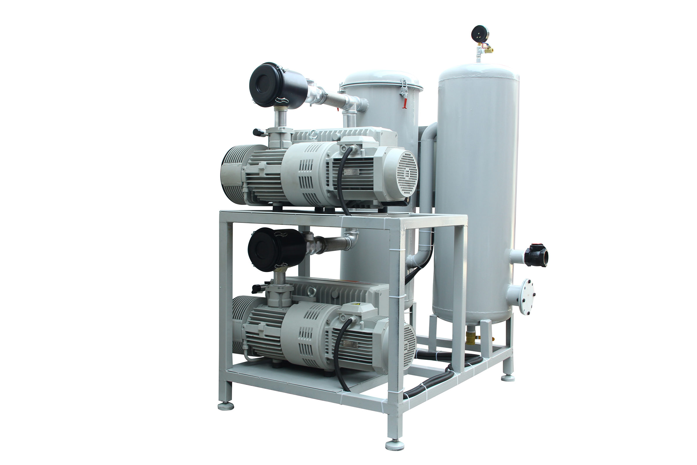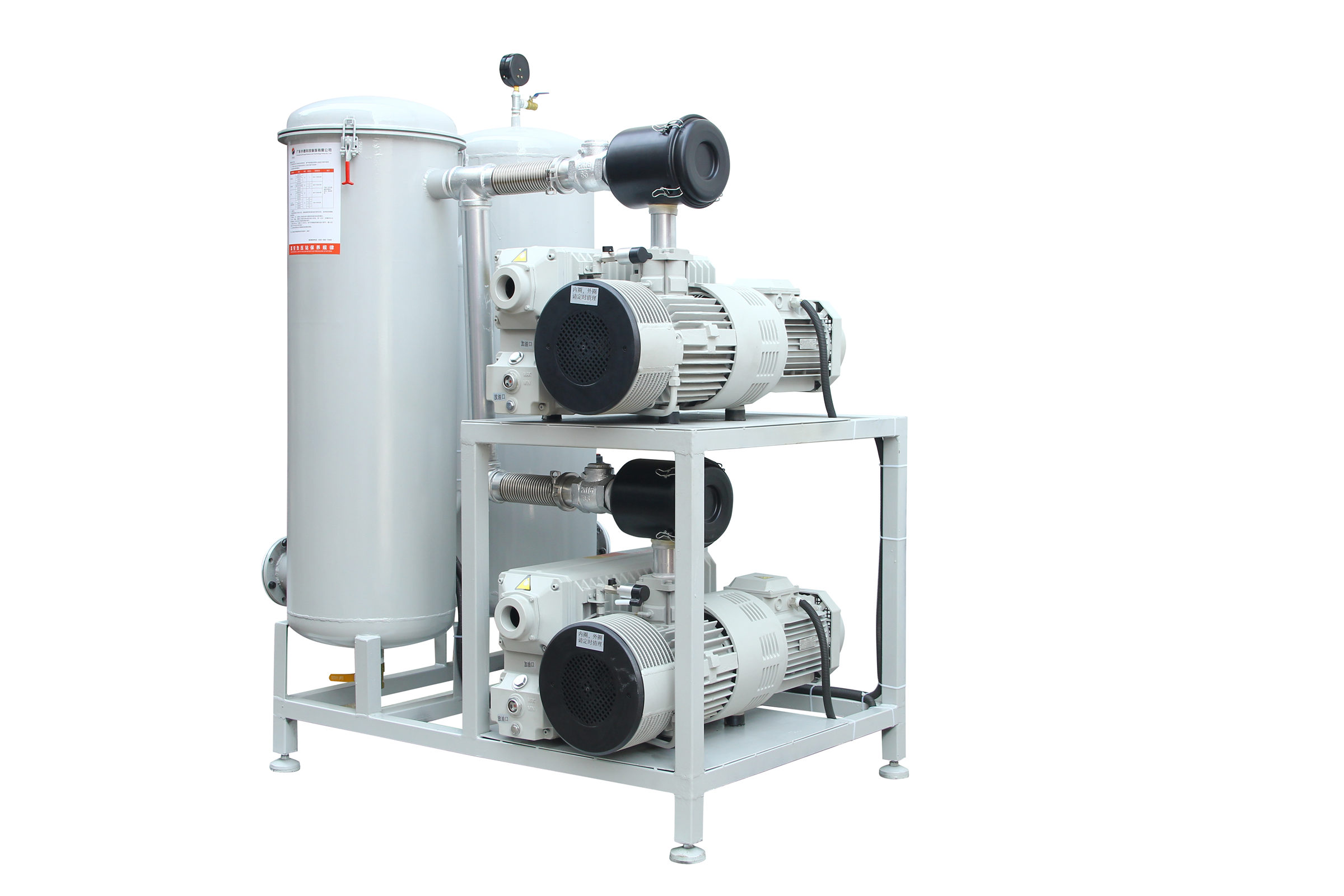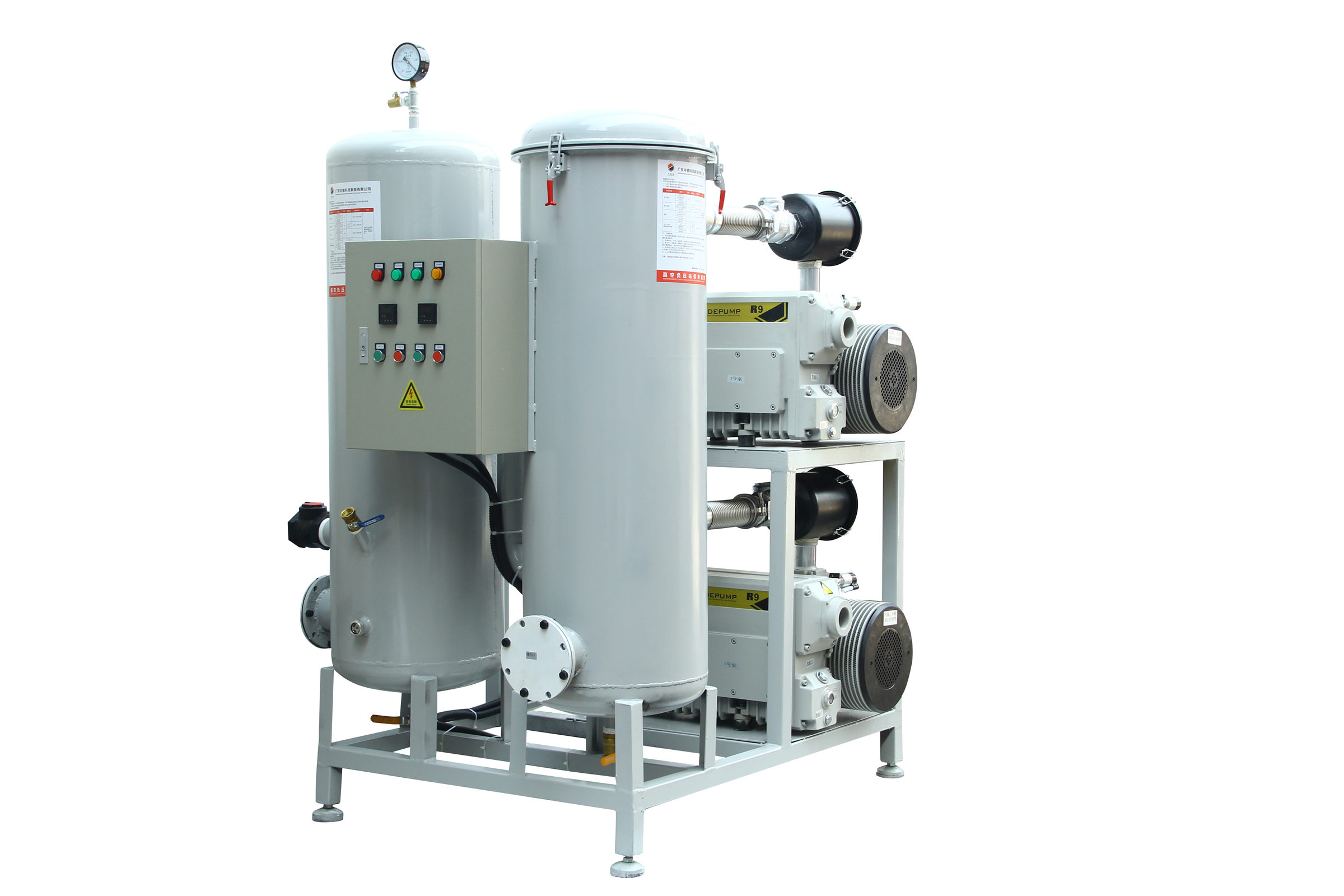 固定式系統(tǒng)一般包括底盤基座、真空泵、真空緩沖罐、控制箱、真空附件(真空閥、真空管道真空過濾器等)、真空度控制系統(tǒng)組成,一般適合抽氣量大,工作條件苛刻等工況例如;3立方真空負(fù)壓站,配置2臺302立方真空泵,真空過濾器組,在自動控制模式下瞬間抽氣速度可達(dá)上干立方每小時時,遠(yuǎn)大于單泵和雙泵直接抽氣的速度。