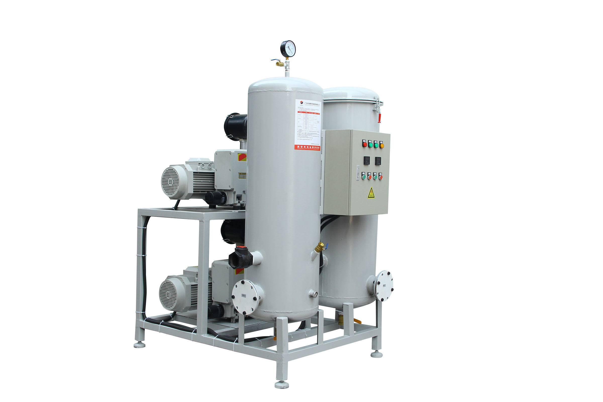 移動式真空負(fù)壓站一般包含真空緩沖罐、真空泵、控制制箱、冷卻卻器、真空附件、真空度報警系統(tǒng);該系列負(fù)壓站包含兩種類型,即開放式真空負(fù)壓站和封閉式真空負(fù)壓站,客戶使用環(huán)境良好,操作簡單,成本要求嚴(yán)格,則可做開放式真空負(fù)壓站;客戶使用環(huán)境惡劣,有大量粉塵,可凝性氣體,腐蝕性氣體等環(huán)境,則做成封閉式。